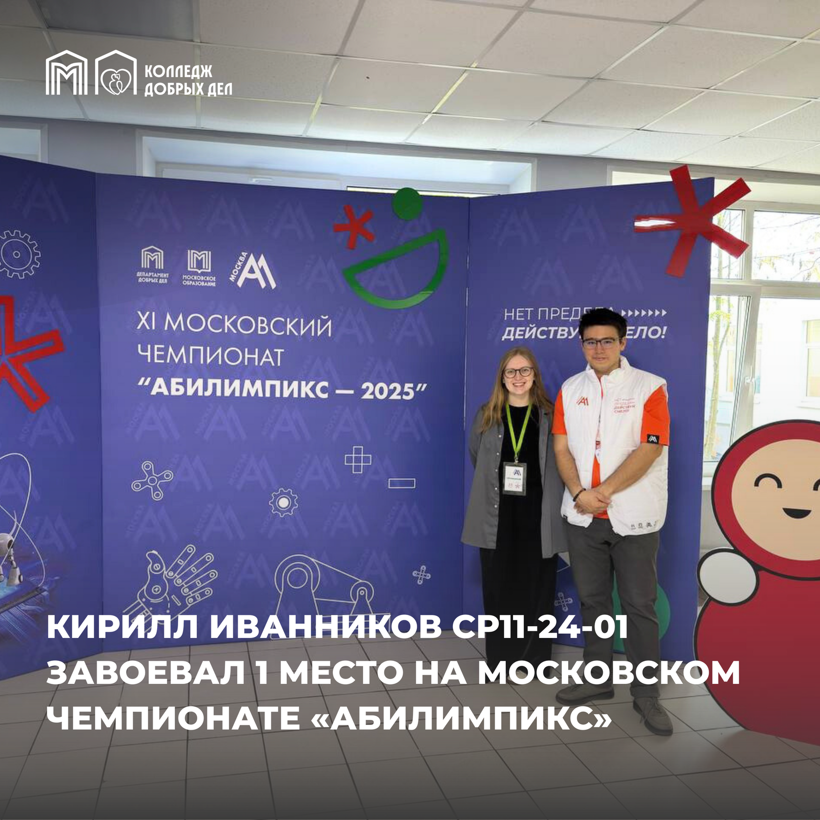 — Вместе со своим наставником Викторией Александровной Кирилл победил в компетенции «Социальная работа».