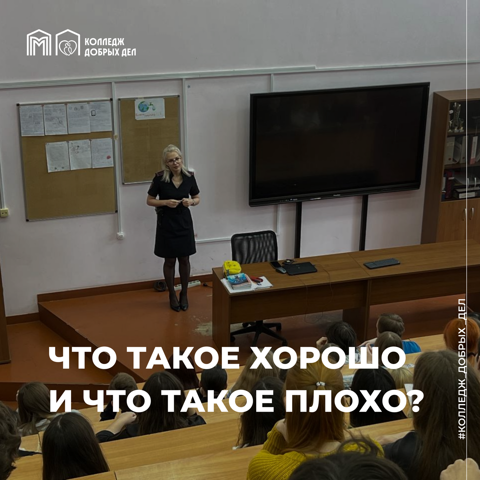 Коллеги из ОДН ОМВД по Бутырскому району поделились со студентами 1-х и 2-х курсов справочной информацией о различных запрещённых формах поведения и идеологиях террористической направленности. Ребятам рассказали о рисках и последствиях колумбайна, скулшутинга и буллинга, а также объяснили, почему важно вовремя замечать необычное поведение окружающих людей.