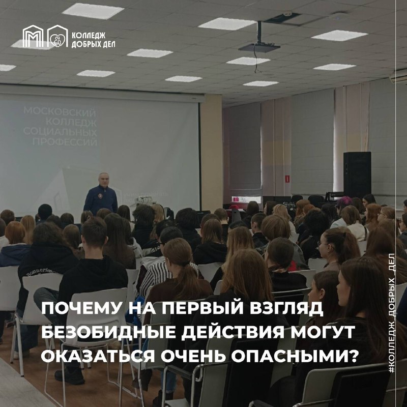 Благодаря ОДН ОМВД России по Бутырском району и представителям ГКУ «Московская безопастность» ребята знают об опасностях, которые могут поджидать их в интернете. Также студентам рассказали, как опознать действия террористического характера и что делать, если они уже стали свидетелями противоправных действий. А ещё представители органов правопорядка напомнили об исходе буллинга. Систематический буллинг может привести к необратимым последствиям, а его зачинщиков ждёт реальная ответственность.